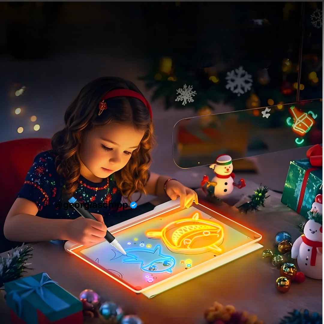 Le Tableau à Dessin Magique LED™ transforme la fascination pour la lumière en outil créatif et éducatif.